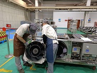 本次勞動(dòng)競(jìng)賽主要以空調(diào)檢修室外風(fēng)機(jī)組裝為參賽項(xiàng)目,參賽內(nèi)容包括風(fēng)機(jī)安裝緊固、連接器對(duì)接安裝、配線綁扎等基本崗位操作技能。