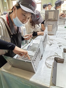 賽前,參賽職工把材料、工具、部件準(zhǔn)備到位,再進(jìn)行變壓器外罩內(nèi)側(cè)密封,部件組裝螺栓緊固,最后外觀再次密封,確保比賽過程萬無一失。裁判組講解規(guī)則后,宣布比賽開始,大家立即投入比賽中。